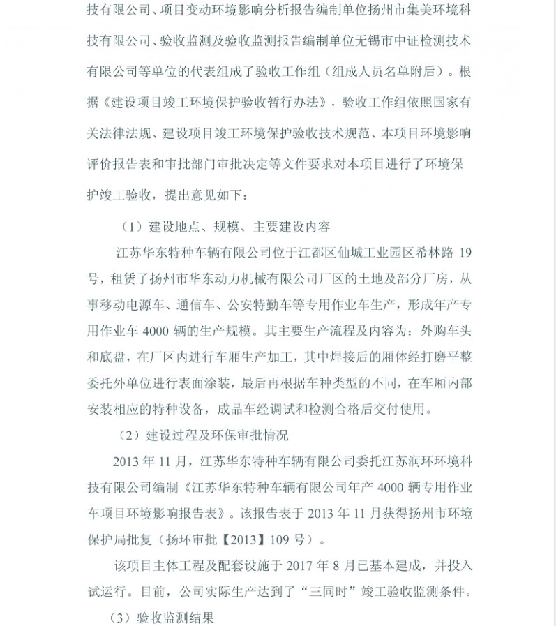 江蘇華東特種車輛有限公司年產(chǎn)4000輛專用作業(yè)車項(xiàng)目竣工環(huán)境保護(hù)驗(yàn)收?qǐng)?bào)告
